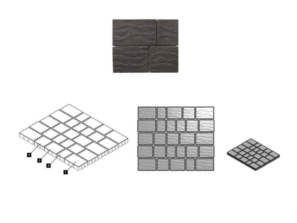 Following sizes in 1 pallet (light traffic/decorative) :